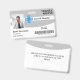 badge d'identification de l'employé en blanc et gris auquel vous pouvez ajouter une photo de votre employé ainsi qu'un numéro d'identification, un titre, un service et un code à barres. Vous pouvez également ajouter votre logo. Parfait pour les hôpitaux, les cliniques, les maisons de retraite et les maisons de retraite.