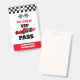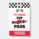 Avoir deux badge vip pass pour anniversaire rapide a une automobile rouge. Cette jolie fête d'anniversaire sur le thème de la voiture de course est pour un garçon.