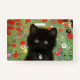 Badge avec un chaton Gustav Klimt ! Ce chaton noir porte un collier d'argent et s'assoit dans un champ de fleurs rouges, bleues, blanches et jaunes. Un cadeau merveilleux pour les amateurs d'art amoureux des chats et autrichiens !