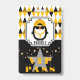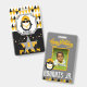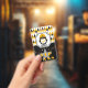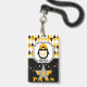 Le Pass VIP ou VIB mignon comporte du Penguin en lunettes noires, un casquette de baseball jaune à l'arrière et une chaîne d'or volante sur un motif arrière - plan diamant jaune, marron, noir, blanc et gris. Joyeux Anniversaire jaune texte cursif au dos avec votre propre Photo et texte. Customisez avec l'initiale et le nom de votre enfant. ©2022 Miss Sassy Party Designs