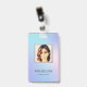 Carte d'identité d'entreprise photo moderne avec code-barres sur hologramme coloré arrière - plan. Des informations supplémentaires peuvent être ajoutées à l'arrière de ce badge d'identification professionnelle