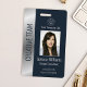 Personnalisez facilement ce badge professionnel de luxe en argent et bleu employés photo d'identité avec vos détails personnalisés.