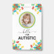 Le badge d'identité Autism comporte une façade ornée d'une photo personnalisée de l'individu, fournissant une représentation visuelle de leur identité unique. Un texte audacieux déclare hardiment "Bonjour, je suis autiste", affirmant l'identité de l'individu avec clarté et confiance. À côté du texte se trouve une illustration du ruban autiste, symbolisant le soutien et la sensibilisation aux troubles du spectre autistique. L'arrière - plan de l'insigne est orné d'un motif de puzzle, représentant la complexité et la diversité au sein de la communauté autiste. À l'arrière de l'insigne, le nom de l'individu est affiché de façon à faciliter l'identification. En outre, un message comportemental personnalisé est inclus, adapté aux besoins et préférences spécifiques de l'individu, dans le but de promouvoir la compréhension et l'accommodement. Les coordonnées des parents ou tuteurs de la personne sont fournies, ce qui garantit un accès immédiat en coque d'urgence ou de demande de renseignements. La conception de l'insigne donne la priorité à la clarté, à la lisibilité et à l'inclusion pour assurer une communication et une reconnaissance efficaces. Des couleurs vives et des illustrations engageantes créent un design accueillant et accessible qui favorise la compréhension et l'acceptation. L'arrière - plan motif de puzzle sert de motif unificateur, renforçant le message de diversité et d'interconnexion au sein de la communauté autiste. Dans l'ensemble, le badge Autism ID sert d'outil puissant pour promouvoir la sensibilisation, l'acceptation et l'inclusion dans tous les environnements.
