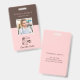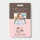 Badge d'ID de photo d'employé de pâtissier de boulangerie. Personnalisez ce design personnalisé avec votre propre photo d'employé, nom et détails de l'entreprise. Ce design présente un logo de gâteau élégant sur fond rose. Parfait pour les boulangeries, les magasins de gâteaux et de pâtisseries, les cafés, les traiteurs, les restaurants ou toute entreprise liée aux services alimentaires.