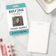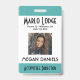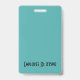 Personnalisez les badges d'identification de vos employés. Tous les détails peuvent être modifiés ou supprimés. Photo, nom, entreprise, département/division/titre. Texte noir net sur fond blanc avec des bordures sarcelles en haut et en bas. Chaque détail peut être personnalisé, y compris les couleurs et les polices. Espace pour des informations supplémentaires au verso du badge, si nécessaire. Si non, peut être supprimé. CARTE DE VISITE ASSOCIÉE DISPONIBLE DANS BUREAU -> CARTES DE VISITE