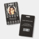 Motif géométrique art déco blanc moderne sur arrière - plan noir. Des informations supplémentaires peuvent être ajoutées à l'arrière de ce badge d'identification professionnelle
