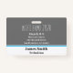 Insigne d'événement horizontal personnalisé en gris foncé, blanc et couleur bleu strobe de police. Tous les éléments sont changeables pour répondre à vos besoins. Éléments : nom de l'événement, date de l'événement, lieu de l'événement, nom du participant à l'événement, titre du participant à l'événement. Assieds-toi sur le dessus pour un lanière. Également disponible en orientation verticale dans ce magasin.