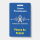Pour ceux qui sont atteints de la maladie de Parkinson, ce badge d'identité peut sensibiliser les autres que l'utilisateur a cette maladie, et la patience et parfois l'aide peut être nécessaire. Le cordon a également la possibilité d'entrer quelques coordonnées en coque d'urgence, et est une aide utile pour les personnes atteintes de la maladie de Parkinson.