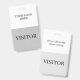 badge Vertical Visitor's Pass en blanc et gris. Tous les éléments sont modifiables ou amovibles. Les éléments comprennent : Nom de l'entreprise, Visiteur (peut dire "invité" ou "passer" ou n'importe quel mot, l'expression "Retourner ce badge avant de sortir", Fente en haut pour le cordon, mais vous pouvez choisir une autre option, comme un clip métallique ou une sangle rétractable. Également disponible en style horizontal.