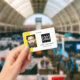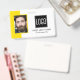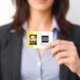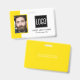 badge d'identification de bureau intelligent avec un arrière - plan jaune et blanc, une photo de l'employé, le logo de votre entreprise, le nom et la profession.
