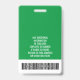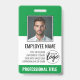 Accents blancs et verts - Un modèle d'entreprise de base qui met en valeur vos logos de bureau et le nom de l'employé. Cette conception de bureau traditionnelle comprend également un numéro d'identification de badge, une date d'expiration et infirmière ou autre titre.