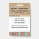 badge d'identification de l'employé vertical avec deux tons beige plus arrière - plan beige marbré. Tous les éléments sont modifiables ou amovibles. Avant de l'insigne : photo de l'employé, nom de l'employé, service de l'employé, nom de l'entreprise et slogan. adresse de l'entreprise, numéro de téléphone, site Web et adresses électroniques. Back of design a également des informations d'entreprise qui sont tous personnalisables. Également disponible en orientation horizontale. Assieds-toi au sommet pour le lanyard. Tous ces éléments peuvent être modifiés ou supprimés.