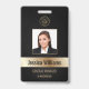Personnalisez facilement ce badge d'identification photo d'employé de style professionnel de luxe noir et or avec vos détails personnalisés.