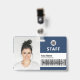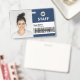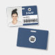 ID photo d'entreprise Nom du personnel Badge Personnalisez facilement ce badge personnalisé de nom d'employé avec photo, code de la barre d'analyse et logo de l'entreprise, avec nom des personnes, profession, code de barre d'identité optionnel, avec clip métallique inclus. Un badge de marque utile pour identifier le personnel, les visiteurs ou les invités. Un design d'entreprise simple aligné à gauche dans des couleurs bleu marine et blanc entièrement personnalisable en tailles avant et arrière, sans-serif polices de base et moderne et un look professionnel et clair. Un outil utile pour les événements d'entreprise, les réunions, les nouvelles et les célébrations. Créez plus de carte d'identification de badge photo d'entreprise en différentes couleurs pour toute catégorie que vous devez identifier : personnel, visiteurs ou invités. Disponible avec ou sans nacelle, clip métallique ou avec rétractable. Pas de commande minimum.