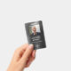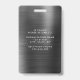 Insigne d'identification photo de l'employé en métal noir moderne personnalisé. Personnalisez ce badge de carte d'identité d'entreprise avec le nom, la position, la photo et le logo de votre entreprise sur le côté avant et votre texte d'information personnalisé sur le côté arrière. La photo de l'employé fonctionne le mieux en format carré. Votre logo fonctionne le mieux comme un format carré png avec arrière - plan transparent. Le logo réservé que vous voyez sur le badge sera complètement remplacé par votre propre logo.