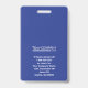 L'insigne d'entrée bleu et blanc avec un texte vertical en gras est idéal pour l'autorisation spécifique au ministère. Téléchargez facilement plusieurs logos et une photo d'employé. Cela peut être accroché sur une longe correspondante qui détient également une carte de clé de l'entreprise. Ce badge d'entreprise est polyvalent pour les lanières bleu royal, bleu marine ou bleu et gris de compagnie. Parfait pour l'ingénierie, la santé ou l'application de la loi. Parfait pour les installations gouvernementales où le personnel a des autorisations différentes.