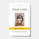 Le badge d'identification photo de l'employé de style d'entreprise, avec un design simple. Le logo de votre entreprise est en haut, votre photo ou code QR est au milieu et ci-dessous est votre nom sur une bande jaune avec votre titre en dessous. Le verso comporte un champ modèle pour le texte facultatif, tel que vos coordonnées professionnelles. Les couleurs de la bande et du texte peuvent être modifiées dans l'outil d'édition de conception.