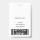 Personnalisez ces insignes verticaux de personnel médical avec une photo et un nom d'employé, ainsi que plusieurs champs de texte personnalisés pour le titre ou le rôle, l'unité ou le plancher, l'abréviation du titre, le numéro d'identification d'employé et la date de validité. Le nom de l'établissement de soins de santé ou de l'hôpital apparaît en haut, en caractères blancs gras. Customisez avec un code à barres sur le dos si nécessaire, avec des informations de retour ou d'autres détails.