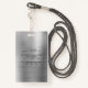 Carte d'identité photo de l'employé en argent moderne personnalisée Noir. Personnalisez ce badge de carte d'identité d'entreprise avec le nom, la position, la photo et le logo de votre entreprise sur le côté avant et votre texte d'information personnalisé sur le côté arrière. La photo de l'employé fonctionne le mieux en format carré. Votre logo fonctionne le mieux comme un format carré png avec arrière - plan transparent. Le logo réservé que vous voyez sur le badge sera complètement remplacé par votre propre logo.