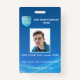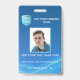 Badge d'ID photo de l'employé vertical. Conception avec arrière - plan bleu avec conception ondulante de la lumière d'onde. Ajoutez facilement le logo de votre entreprise en utilisant notre image modèle. ID avec photo, nom, nom de société, numéro d'identification ou toute autre information que vous souhaitez. Retour avec la zone pour l'information dans le badge coque se perd. Également disponible en présentation horizontale. À tous ceux qui travaillent dans les lignes, MERCI POUR VOTRE SERVICE EXTRAORDINAIRE!