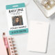 Customisez les badges d'identification photo de votre employé. Tous les détails peuvent être modifiés ou supprimés. Photo, nom, entreprise, département/division/titre. Texte noir croquant sur arrière - plan blanc avec des bordures turquoises en haut et en bas. Chaque détail peut être customisé, y compris les couleurs et les polices. Spot pour obtenir des renseignements supplémentaires sur l'inversion de l'insigne, si nécessaire. Sinon, peut être supprimé. CARTE DE VISITE CORRESPONDANT DISPONIBLE DANS OFFICE->CARTES DE VISITE