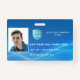 Insigne d'identification photo horizontale de l'employé.  Conception avec arrière - plan bleu avec conception ondulante de la lumière d'onde.  Ajoutez facilement le logo de votre entreprise en utilisant notre image modèle. ID avec photo, nom, nom de société, numéro d'identification ou toute autre information que vous souhaitez. Retour avec la zone pour l'information dans le badge coque se perd. Également disponible en présentation verticale. À tous ceux qui travaillent dans les lignes, MERCI POUR VOTRE SERVICE EXTRAORDINAIRE!