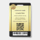 Carte d'identité avec photo avec photo et logo sur mesure sur un motif or et noir. À l'arrière, vous pouvez ajouter un code à barres et/ou un code QR personnalisé et des textes supplémentaires (ou supprimer les modèles).