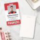 Personnalisez ces badges verticaux de personnel médical ou de premiers intervenants avec une photo et le nom de l'employé, ainsi que plusieurs champs de texte personnalisés pour le titre ou le rôle, le nom de l'hôpital ou de l'établissement de santé, le numéro d'identification de l'employé ou la date de validité. "PARAMÉDIC" ou le texte souhaité apparaît en bas en lettres blanches grasses pour une identification facile. Personnalisez avec un code-barres au dos si nécessaire, ainsi que des informations de retour ou d'autres détails.
