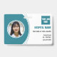 Ce badge d'identification photo médicale horizontale présente un design moderne blanc et bleu clair. Personnalisable avec le nom et le logo de votre hôpital, ainsi que votre photo, nom, position, ID et emplacement. Le dos présente des informations personnalisables utiles en coque de perte.