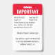 Badge Identification de l'enfant Allergie Médicale Urgen