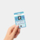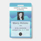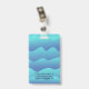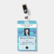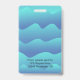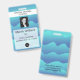 Modèle de photo avec logo, badge d'identification pour les employés, hôpital, infirmières, réunions d'événements spéciaux. Vagues bleues dégradées décoratives et informations sur un cadre transparent.
