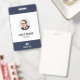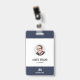 Un badge d'identification d'entreprise moderne comportant la photo, le nom, la profession d'un membre du personnel. Celui-ci comprend également le nom et le logo de l'entreprise sur l'avant et l'arrière du badge. La couleur principale du badge peut être personnalisée en changeant la couleur de fond.