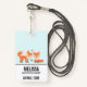 Nom badge avec une illustration graphique de 2 renards oranges à l'air mignon et heureux.