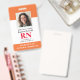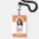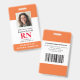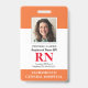 Carte d'identité photo moderne Infirmière inscrite à la RN Insigne. Conception avec arrière - plan blanc et orange médical, photo unique, nom d'hôpital, profession et nom. Personnalisez votre code à barres et vos coordonnées. Les badges modernes d'identification simplifient l'identification des employés par les clients et les clients. Pour modifier ce modèle, cliquez sur customiser plus loin.