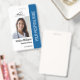 Personnalisez facilement ce badge photo d'employé médical professionnel bleu avec vos informations personnalisées.