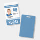 Infirmière du personnel Médicale Infirmière Badge d'identité. Idéal pour les cartes d'identité de clinique et d'hôpital pour identifier le personnel. Comprend l'unité ou le service hospitalier pour faciliter le contrôle d'accès. Affiche les initiales de certification, telles que RN, LPN ou NP.