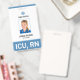 Un badge moderne pour le personnel hospitalier comme les infirmières autorisées (RN). Tous les éléments de conception peuvent être personnalisés pour convenir aux couleurs de votre hôpital ou de votre lieu d'affaires. Idéal pour les employés du domaine médical qui ont besoin de leur désignation affichée en évidence, comme les infirmières autorisées, les infirmières auxiliaires, les infirmières praticiennes et les médecins.