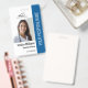 Personnalisez facilement ce badge bleu photo d'employé médical professionnel avec vos détails personnalisés.