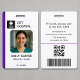Un modèle de badge d'identification d'infirmière pédiatrique professionnelle comportant un espace pour votre photo, votre nom, votre titre de poste, votre numéro d'identification et votre logo personnalisé. Conçu avec une palette de couleurs violettes épurées, ce badge est idéal pour les infirmières pédiatriques, les pédiatres, les spécialistes de la vie de l'enfant et le personnel médical travaillant dans les hôpitaux ou les cliniques pour enfants. Le verso comprend des espaces réservés pour un code-barres, un code QR et des coordonnées en cas de perte ou de vol pour une sécurité accrue. Parfait pour les hôpitaux, les cabinets de pédiatrie et les organismes de santé nécessitant une identification du personnel personnalisable.