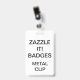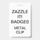 La coutume a imprimé a personnalisé 3,38" x 2,13" modèle VERTICAL de blanc d'INSIGNE d'AGRAFE EN MÉTAL. La conception, créent, font vos propres. Votre photo, image, texte, le logo, graphiques en bord-à-bord polychrome impriment sur l'avant et l'arrière, horizontal ou vertical. Fait du plastique de PVC, les biens, ne se faneront pas ou ne déchireront pas. Agrafe escamotable, en métal, collier de lanière, ou juste insigne.