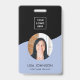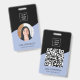 Insigne de code QR minimal du personnel moderne avec photo, code QR, logo de l'entreprise, nom et titre de l'employé. Vous pouvez facilement le customiser avec vos détails d'affaires.