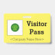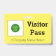 Ce badge conservateur comporte le message "Visitor Pass" et un nom d'entreprise personnalisable ou tout autre message personnalisé. Un badge comme celui-ci pourrait peut-être être utilisé pour indiquer qu'une personne est un invité ou un visiteur connu et autorisé dans une entreprise ou un lieu de travail. [~Z0000307]