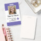 Purple Modern Employé Badge Modèle, Photo et nom et tous les détails sont modifiables, parfait Nurse ID avec code barre.
