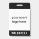 Customisez ce simple badge du personnel de l'événement bénévole moderne avec votre logo. Si votre logo est carré, il remplira entièrement l'espace blanc. Si votre logo n'est pas carré, il apparaîtra sur un arrière - plan noir. Le dos de l'insigne peut être personnalisé avec le nom de l'événement et la date ou l'année, ou vous pouvez supprimer les deux pour avoir un dos tout noir. Ce badge minimaliste du personnel bénévole est idéal pour des événements spéciaux, des festivals, des concerts et des conventions.