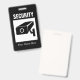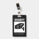 Insigne de nom de la compagnie de sécurité avec image du logo de la caméra CCTV. Coupe ou chaîne de caractères lanyard rétractable facultative. Design modèle de typographie moderne. Ajoutez vos propres nom, titre de travail, fonction de travail, etc. Des étiquettes de nom personnalisées pour les agents de sécurité, les enquêteurs privés, le personnel, le personnel, les employés, les employés de l'entreprise, les bénévoles, les collègues, les collègues, les intervenants d'urgence, les invités, les visiteurs, les clients, les étudiants, les moniteurs, etc. Des couleurs personnalisables et des lettres. Disposition simple avec des lettres claires et faciles à lire. Changez la quantité pour obtenir le prix en vrac bon marché. Forme verticale ou horizontale avec symbole de sécurité de la surveillance vidéo. Pratique à l'hôpital, au musée, aux affaires, au bureau, au parc, au parking, à l'agence secrète, à zone militaire restreinte et autres endroits.
