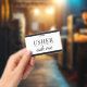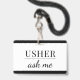 Un huissier moderne me demande un badge de nom pour l'événement, ou des huissiers de théâtre. Customisez avec votre nom. Moderne, simple, design.