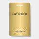 Customisez ce faux badge d'équipe d'équipe d'évènements de bénévoles en métal d'or avec votre logo. Si votre logo est carré, il remplira entièrement l'espace blanc. Si votre logo n'est pas carré, il apparaîtra sur un arrière - plan or. Le dos de ce badge peut être personnalisé avec le nom de l'événement et la date ou l'année, ou vous pouvez supprimer les deux pour avoir un retour tout or. Ce badge personnel simple et minimaliste est idéal pour des événements spéciaux, des festivals, des concerts et des conventions.