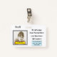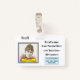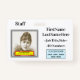 Cette conception élégante et élégante de badge du personnel comporte des détails modifiables tels qu'une photo de portrait, un logo d'entreprise, un nom de membre du personnel et un rôle/titre. Un badge comme celui-ci pourrait peut-être être utilisé pour indiquer qu'une personne est un membre du personnel connu et autorisé dans une entreprise ou un lieu de travail. [~Z0000450]