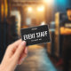 Insigne d'identité du personnel de l'événement de l'entreprise. Un badge personnalisé avec un modèle modifiable pour les événements spéciaux. Les employés peuvent l'utiliser comme laissez-passer d'accès ou laissez-passer d'étape. Consultez le reste de la collection pour d'autres variantes de conception.