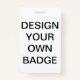 La coutume a imprimé a personnalisé 2,13" x 3,38" modèle de blanc d'INSIGNE de PORTRAIT. La conception, créent, font vos propres. Votre photo, image, texte, le logo, graphiques en bord-à-bord polychrome impriment sur l'avant et l'arrière, horizontal ou vertical. Fait du plastique de PVC, les biens, ne se faneront pas ou ne déchireront pas. Agrafe escamotable, en métal, collier de lanière, ou juste insigne. Meilleur pour le bureau et l'utilisation d'identité d'affaires, les expos, les expositions, les conférences et les événements d'entreprise.